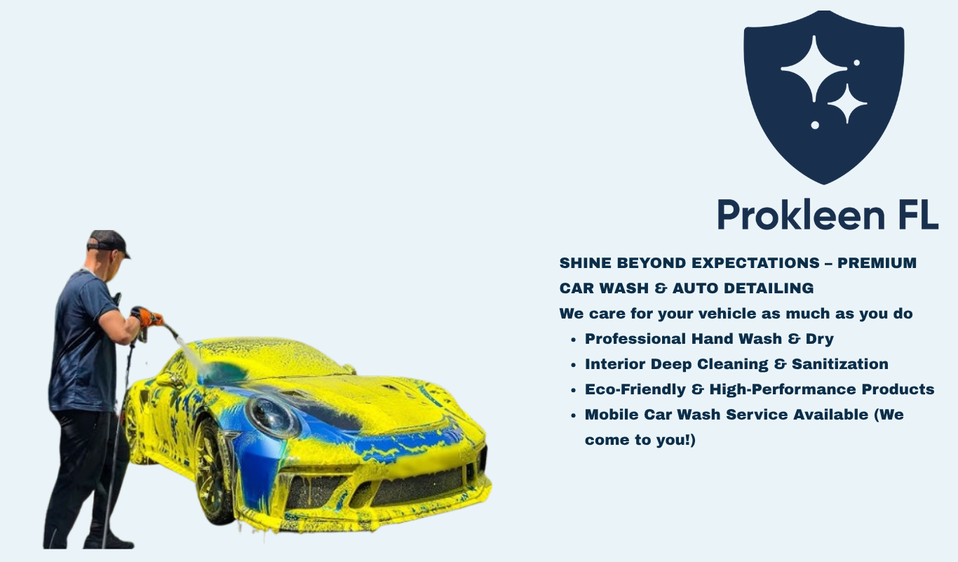 At Prockleen FL, we provide commercial cleaning and mobile car wash services with expertise and precision. Our teams are trained to recognized standards and certified by OCHA as well as other specialized organizations, ensuring safe and effective cleaning.