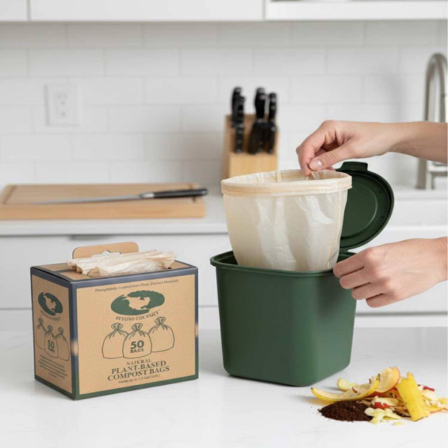 Each 3.5-gallon (13 L) bag is strong, flexible, and fits most countertop compost bins or small kitchen trash cans. A simple, environmentally responsible way to reduce plastic use and support a greener planet .
