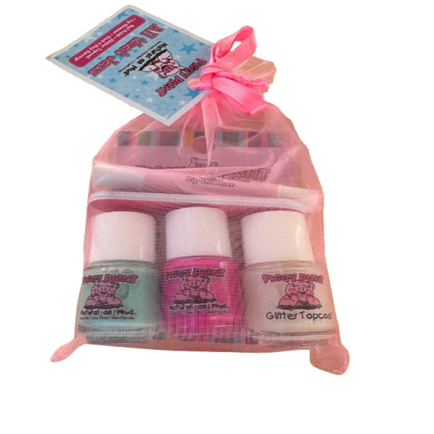 The Piggy Paint All That Jazz Gift Set brings all the sparkle without harsh chemicals! Designed for kids, Piggy Paint nail polish is non-toxic, virtually odorless, and water-based, drying hard without peeling or washing off.
